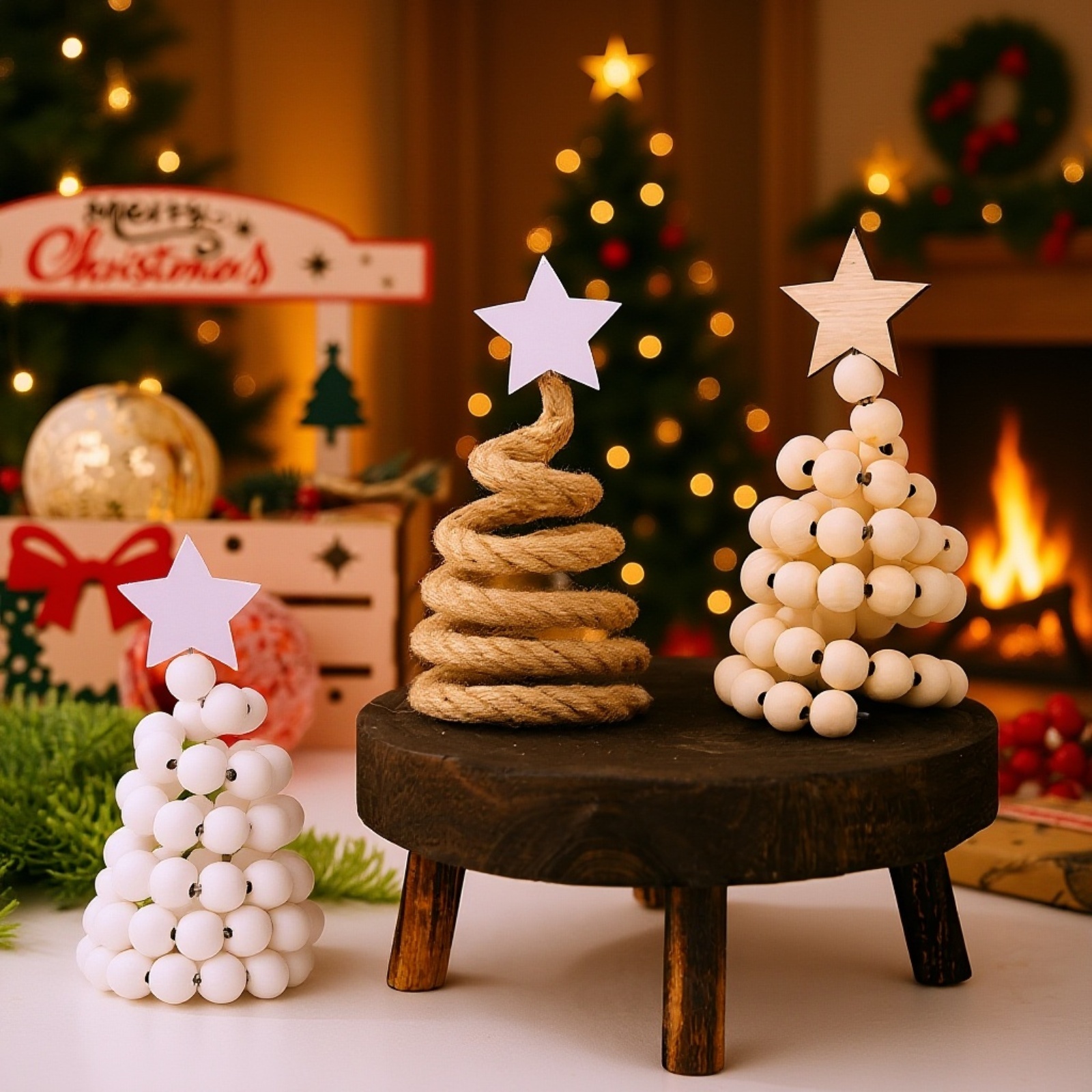 ● ต้นคริสต์มาสตกแต่งขนาดเล็กสำหรับวางบนโต๊ะ เหมาะกับการเพิ่มบรรยากาศคริสต์มาสในบ้านหรือที่ทำงานอย่างง่ายดาย