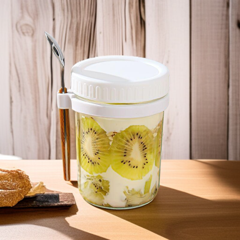 ปิดผนึกแบบพกพาพร้อมฝาแก้วอาหารเช้าพร้อมช้อน